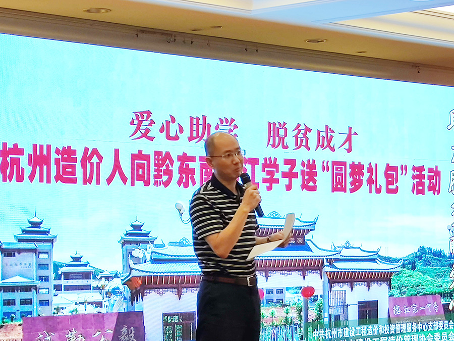 2、杭州市建設(shè)工程造價(jià)管理協(xié)會(huì)常務(wù)副會(huì)長(zhǎng)蔡紅偉介紹自對(duì)口扶貧榕江縣以來(lái),杭州市工程造價(jià)管理協(xié)會(huì)是如何開(kāi)展對(duì)榕江縣愛(ài)心扶貧工作的。